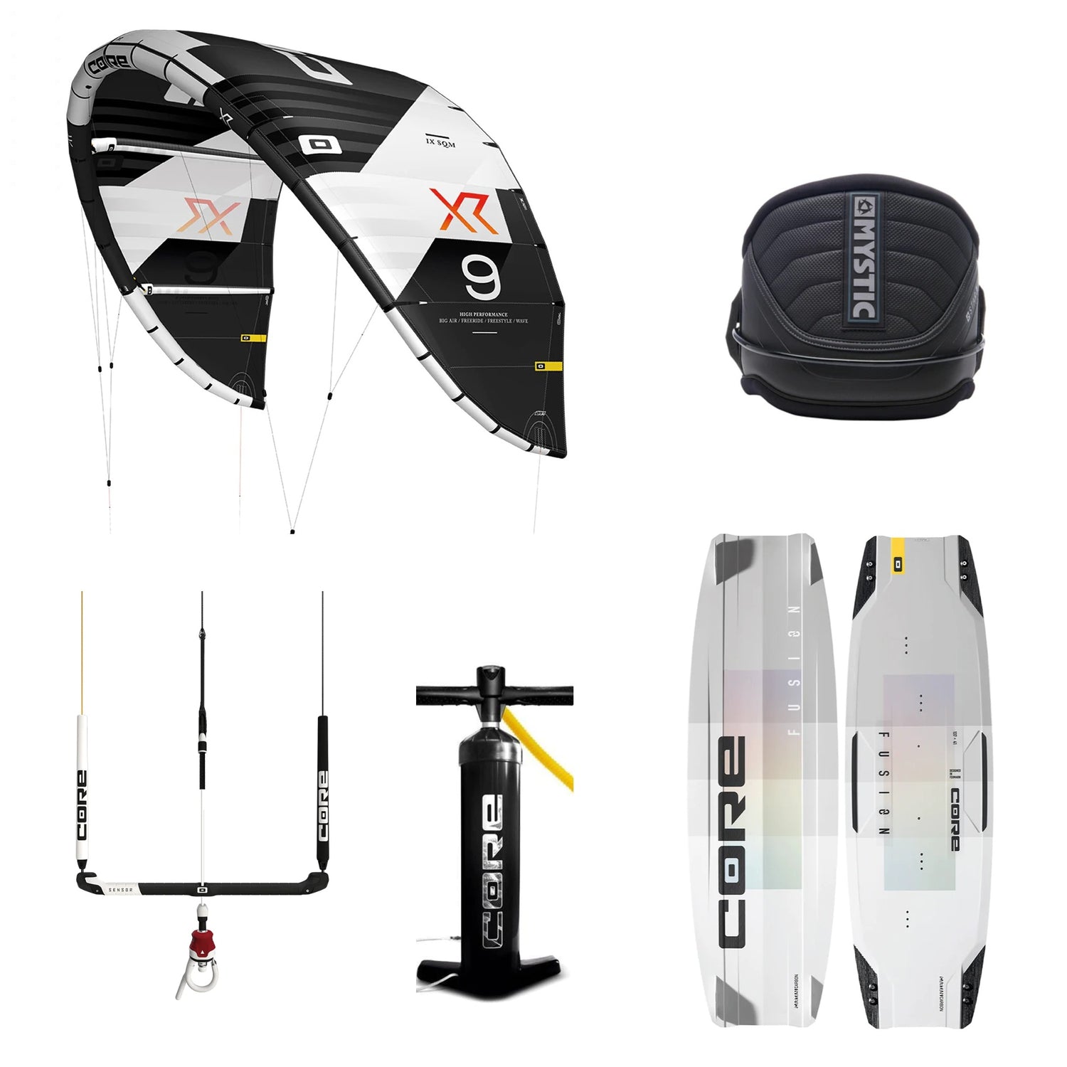 Pick a Core Kite XR7 (30% Pre-discounted) or XR8 Kite, with a Fusion 6 Board, Sensor 3 Pro Bar, Mystic Star Harness (20% Pre-discounted), Union Pro Footstraps, and Accessories for a 5% discount.
