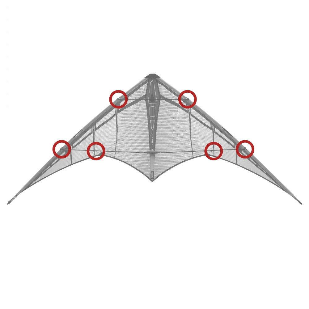 A full set of flexible molded fittings for your Jazz or Jazz 2.0. Includes 4 leading edge fittings (to connect your kite's spreaders to the leading edge rods) and 2 standoff retainer fittings to connect your kite's standoffs to the lower spreaders.