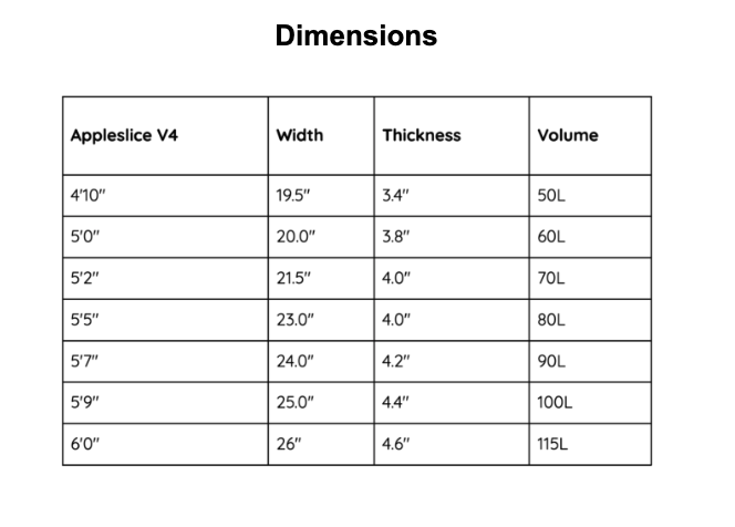 The AppleSlice V4 comes in a wide range of volumes to suit every riding style: